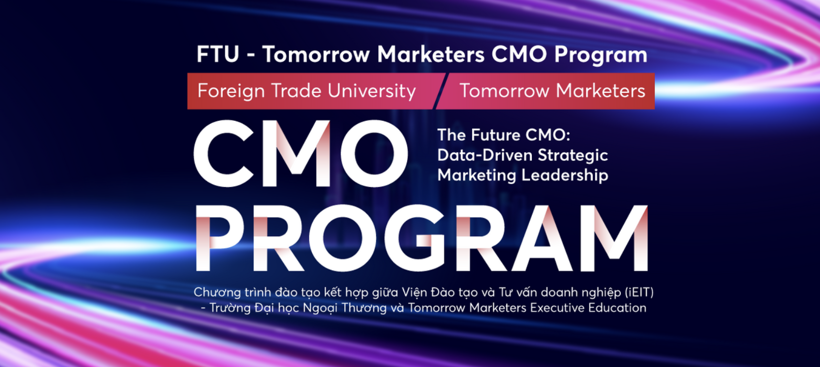 CMO Program – chương trình đào tạo kết hợp giữa iEIT – Trường Đại học Ngoại Thương và Tomorrow Marketers – cung cấp các framework bài bản về brand và strategy để xây dựng chiến lược marketing phù hợp với đặc thù ngành. Đồng thời, chương trình trang bị cách ứng dụng AI và Data nhằm tối ưu vận hành và gắn chiến lược dài hạn với hiệu quả kinh doanh thực tế.